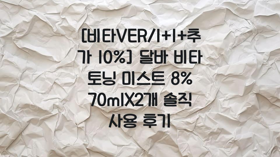 안녕하세요 요즘 피부 관리에 정말 많은 신경을 쓰고 있는데요. 특히, 외출 전에 빠르게 수분과 영양을 공급해줄 수 있는 제품이 필요했어요. 하지만 여러 제품을 사용해 보았지만, 원하는 효과를 찾기가 쉽지 않았습니다. 그래서 저의 고민을 해결해줄 아이템을 찾았어요. 바로 [비타VER/1+1+추가 10%] 달바 비타 토닝 미스트 8% 70mlX2개입니다. 이 제품, 정말 기대 이상이에요